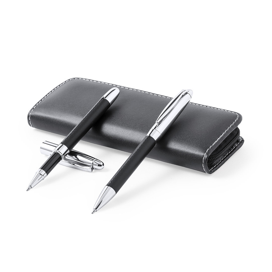Culoare pixuri: Combinație elegantă de piele ecologică neagră și metal cromat