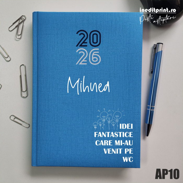 NEDATATA H- format A5, prevazută cu semn de carte, interiorul conține o pagină pentru date personale, o pagină pentru notițe, harta Romaniei, copertă buretată, 224 de pagini, hârtie albă de calitate, gramaj 70 g/mp.