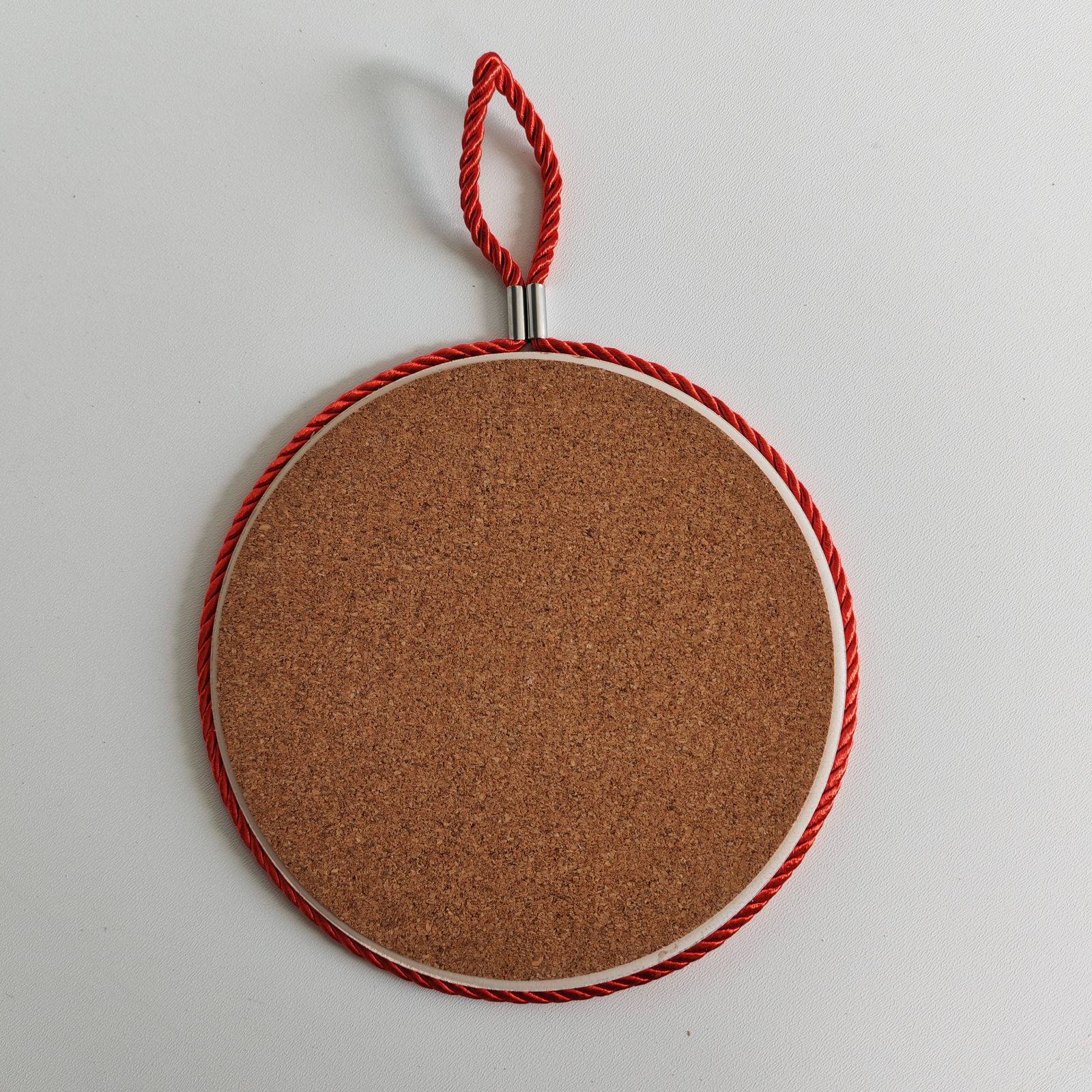 Sistem de prindere: Margini finisate cu șnur împletit roșu, prevăzut cu agățătoare pentru fixare rapidă.