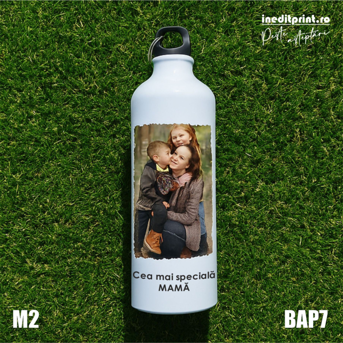 Bidon personalizat cu poză și text la alegere, ideal pentru școală, birou, călătorii sau activitățile de zi cu zi.