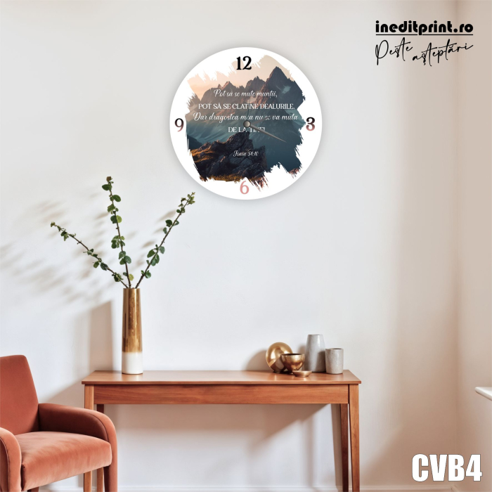 Timpul trece, promisiunile rămân. Un cadou cu o semnificație profundă, care îmbină utilitatea unui ceas de perete cu puterea versetului din Isaia 54:10. Ideal pentru a aduce liniște și stabilitate în orice cămin.