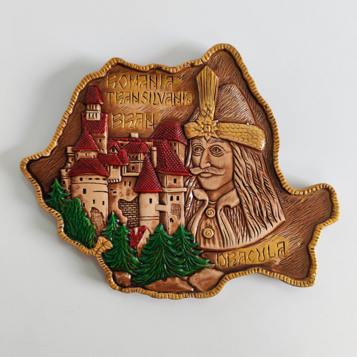Plachetă Decorativă Harta României – Vlad Țepeș & Castelul Bran