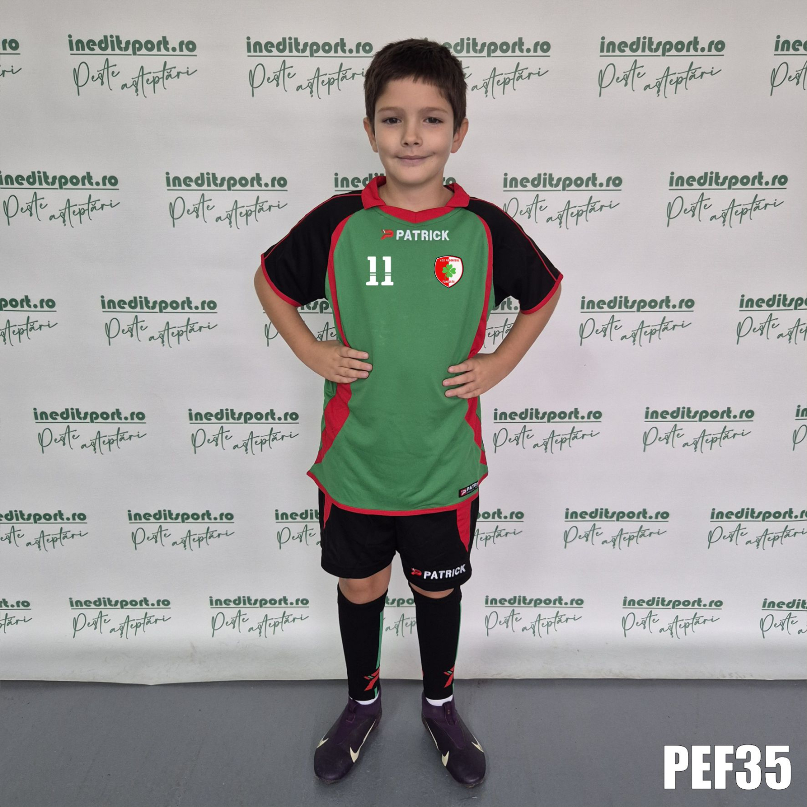 Echipament de fotbal pentru copii, format din tricou, șort și Jambiere PATRICK. Echipamentul este confecționat din Poliester 100%, material foarte rezistent, special folosit in compețiile sportive. Acesta poate fi personalizat in functie de preferintele dumneavoastră.