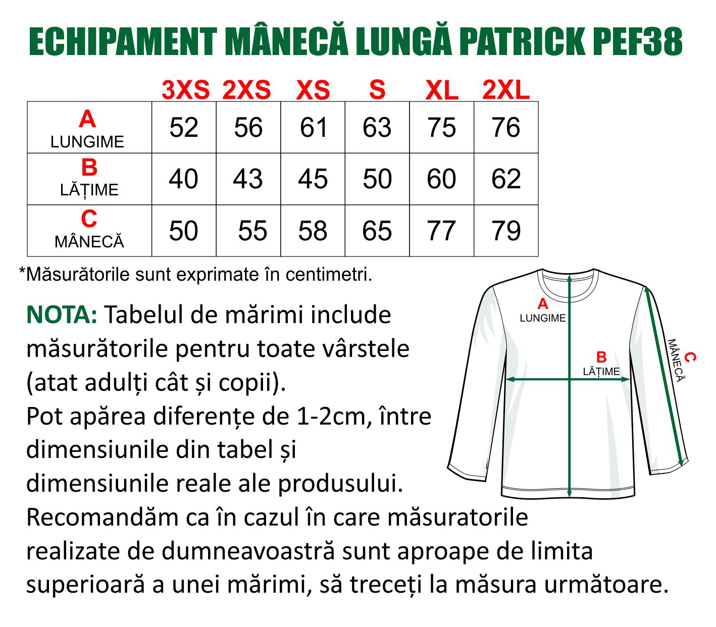 Kit echipament fotbal maneca lunga copii Patrick PEF38