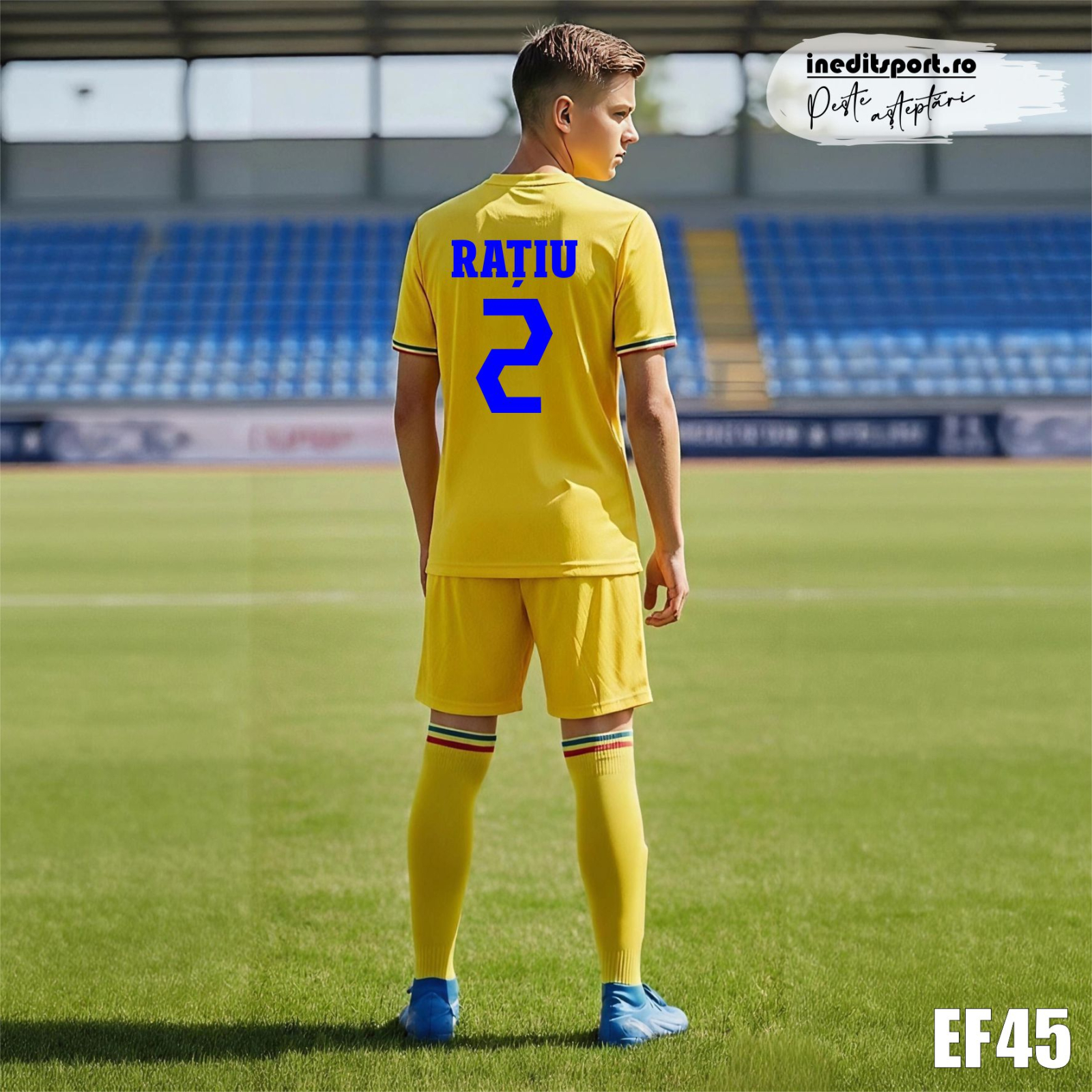 Tricoul de Joc: Galbenul legendar și detalii tricolore discrete la mâneci.