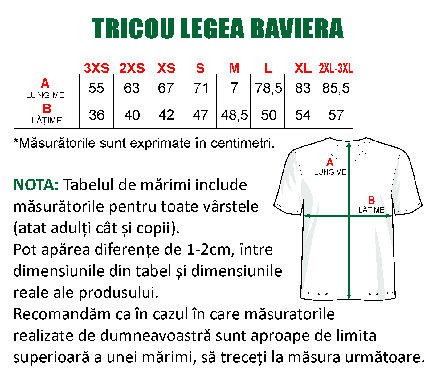 Recomandam sa urmati toti acesti pasi pentru a va asigura ca marimea aleasa de dumneavoastra este intr-adevar potrivita. Atentie, nu este suficient sa ne precizati doar inaltimea persoanei respective si greutatea, deoarece pot aparea erori. Fiind PRODUSE PERSONALIZATE cu datele dorite NU SE POT RETURNA SAU SCHIMBA.