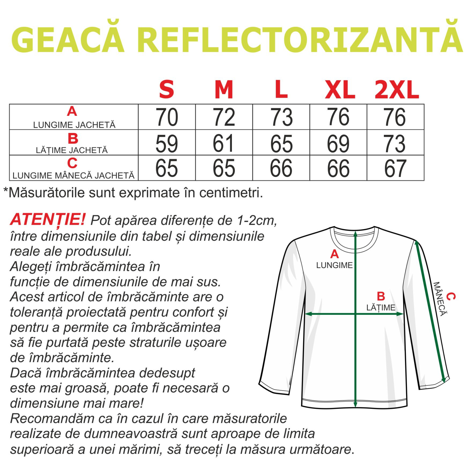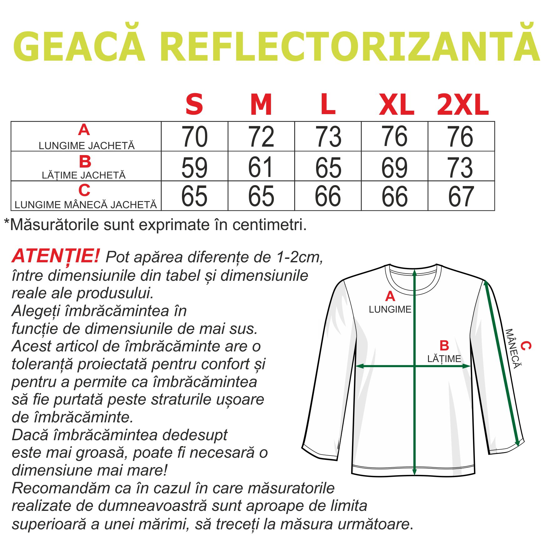 Jacheta se va spăla pe dos, pentru a proteja benzile reflectorizante.