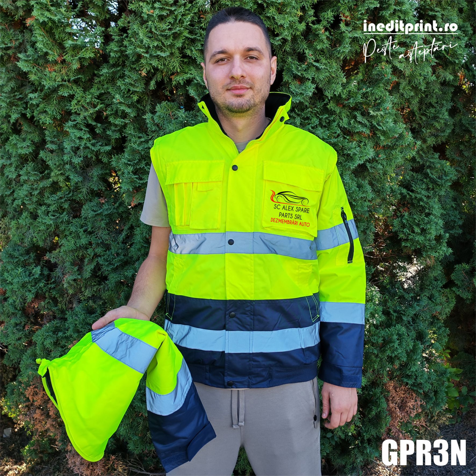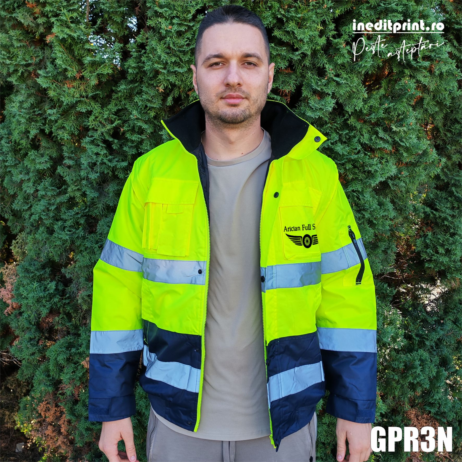 Geacă reflectorizantă groasă impermeabila pentru anotimp de iarnă cu personalizare pe față și pe spate