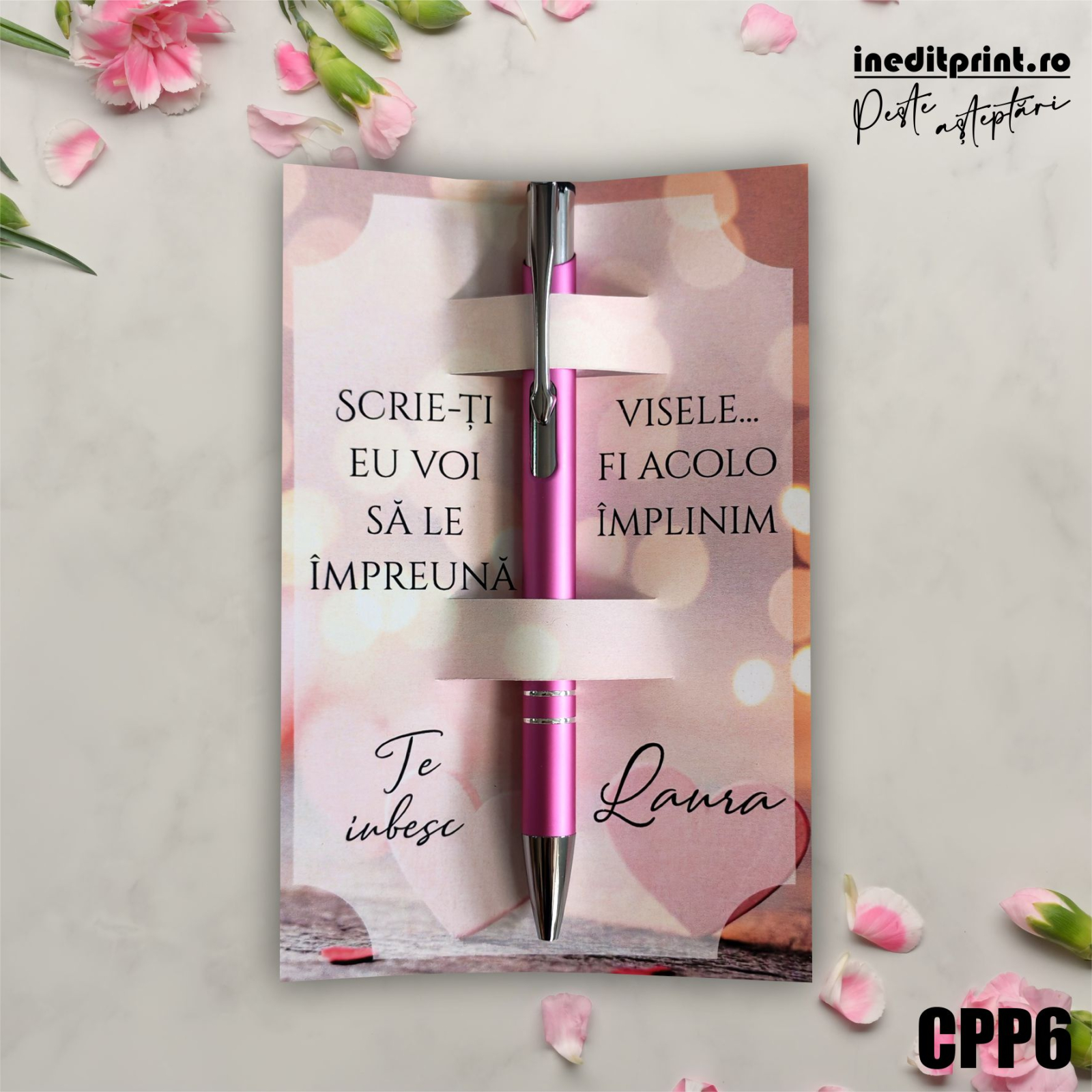 Atât pixul, cât și cartonașul pot fi personalizate cu numele persoanei dragi, pentru un cadou cu adevărat special, care să aducă un zâmbet sincer și să rămână o amintire de suflet.