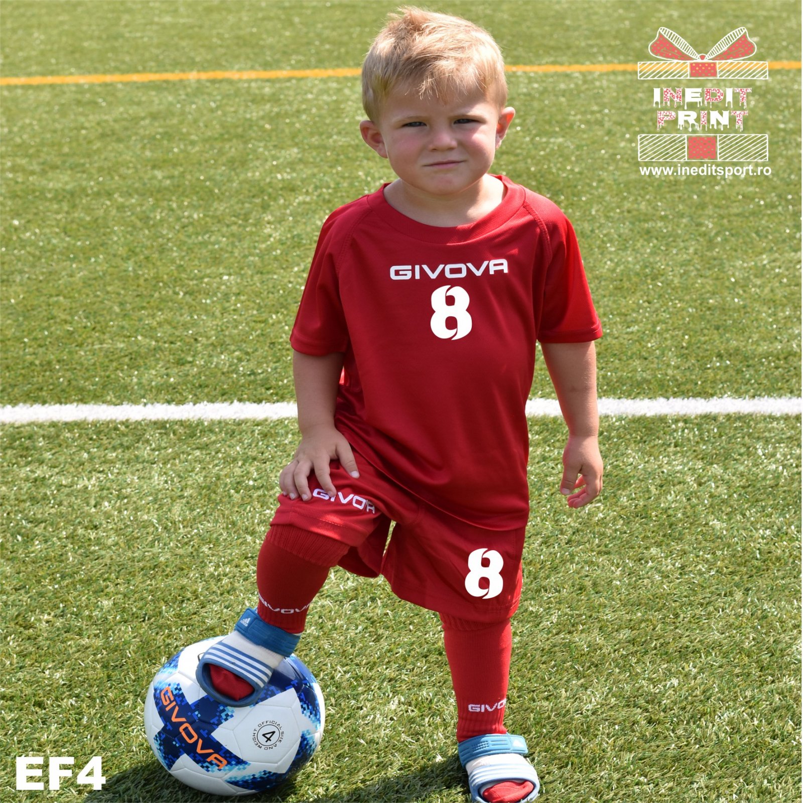 SOCCER Pack este format dintr-un echipament de fotbal personalizat, marca GIVOVA, o pereche de jambiere, o minge și un card FIFA personalizat.