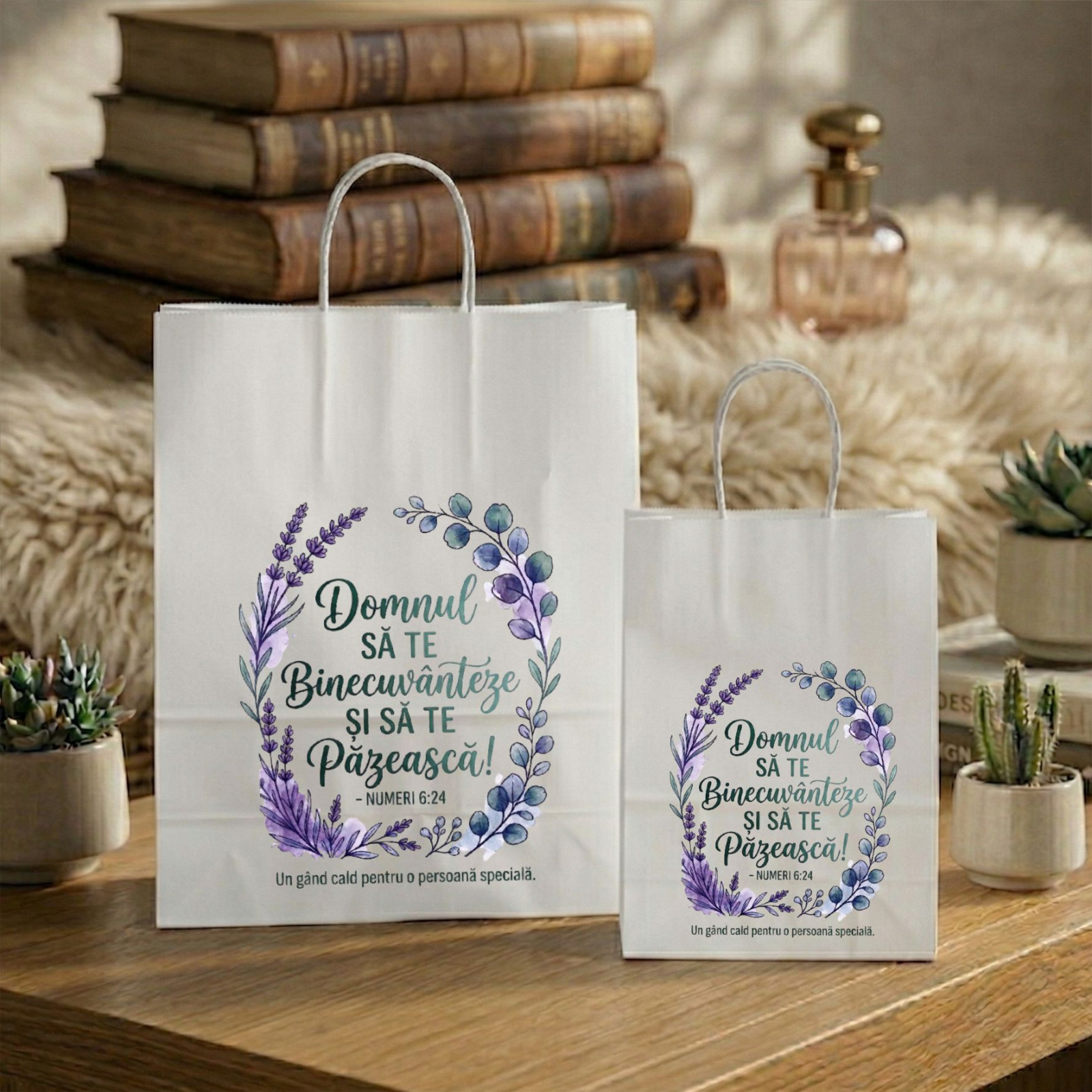 Transformă fiecare dar într-o mărturie de credință! Pungile noastre din hârtie albă, personalizate cu texte creștine și versete biblice pline de inspirație, sunt alegerea perfectă pentru a completa un cadou oferit din suflet. Fie că este vorba despre un eveniment în biserică, o sărbătoare în familie sau un gest de mulțumire, aceste pungi adaugă o notă de eleganță și profunzime spirituală.