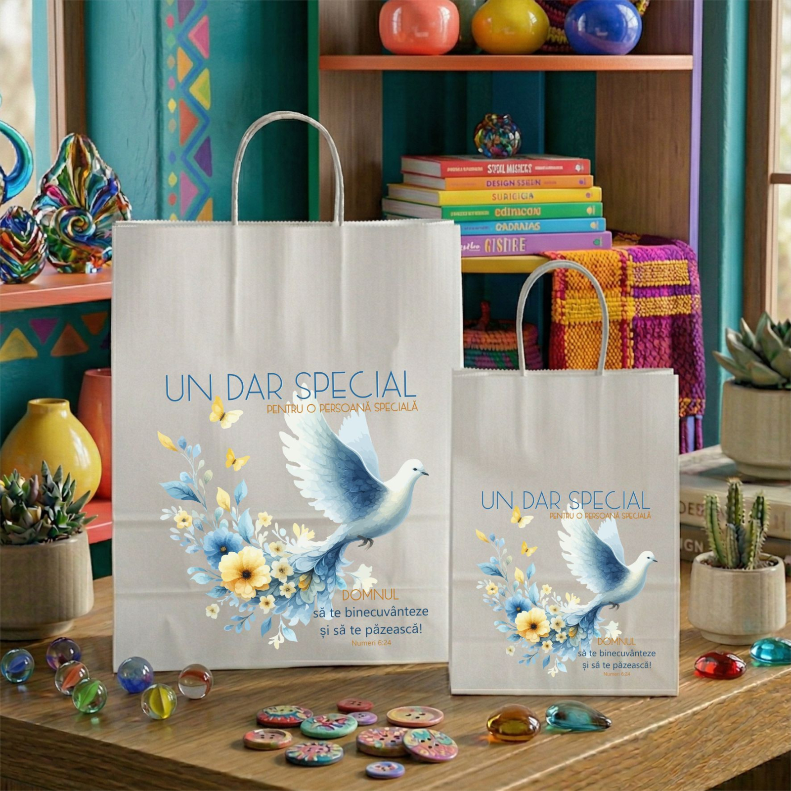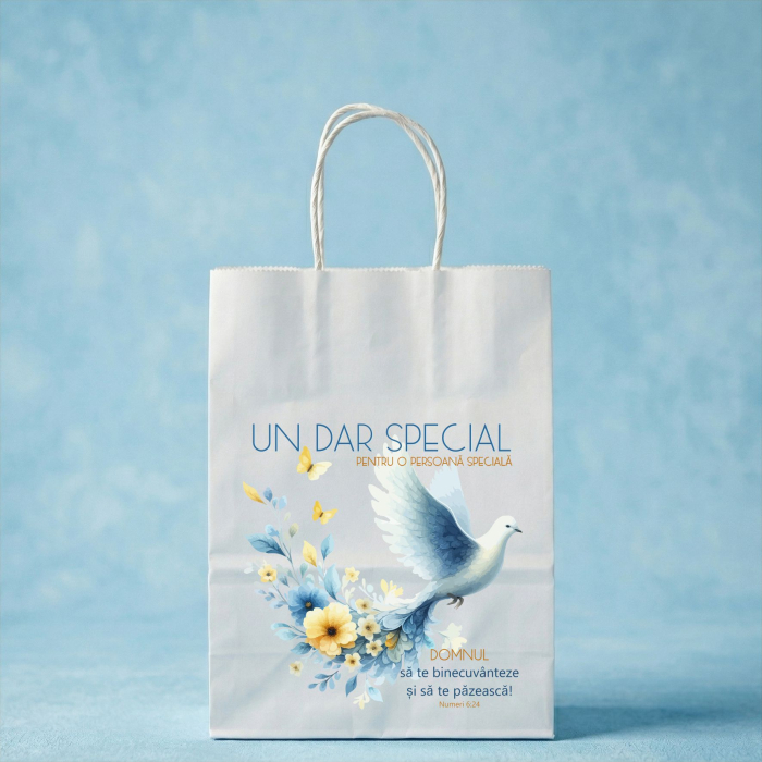 Transformă fiecare dar într-o mărturie de credință! Pungile noastre din hârtie albă, personalizate cu texte creștine și versete biblice pline de inspirație, sunt alegerea perfectă pentru a completa un cadou oferit din suflet. Fie că este vorba despre un eveniment în biserică, o sărbătoare în familie sau un gest de mulțumire, aceste pungi adaugă o notă de eleganță și profunzime spirituală.