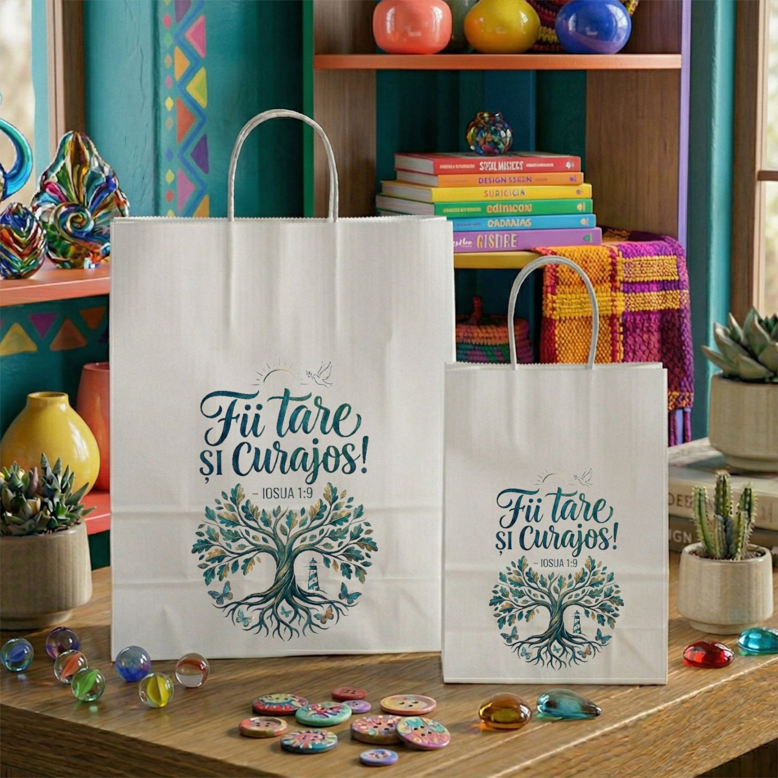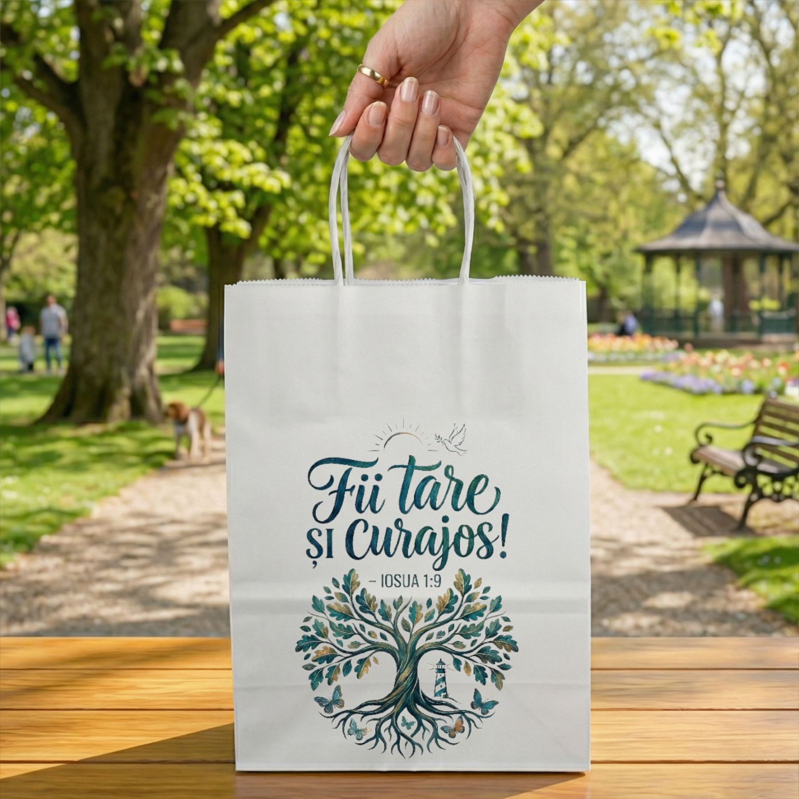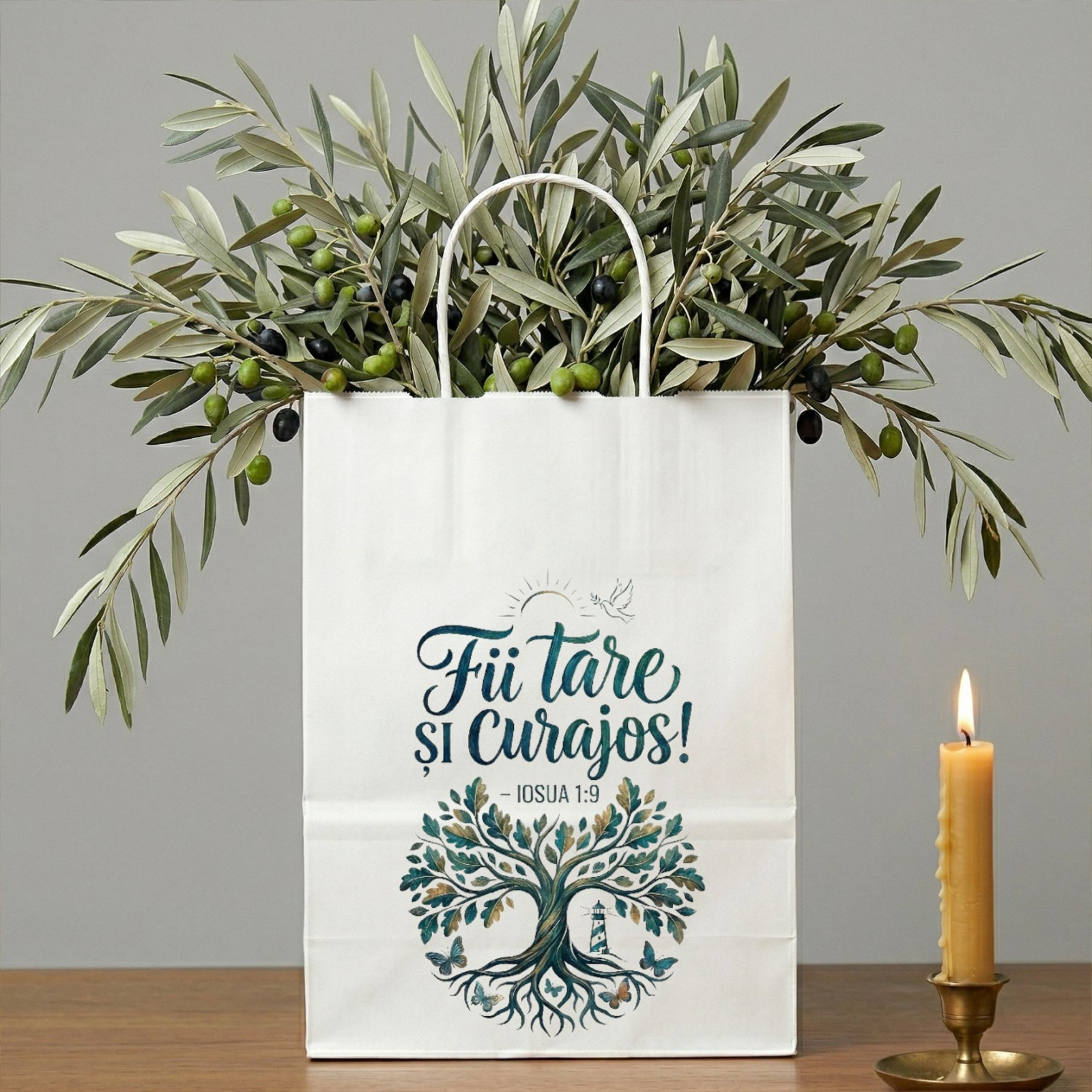Transformă fiecare dar într-o mărturie de credință! Pungile noastre din hârtie albă, personalizate cu texte creștine și versete biblice pline de inspirație, sunt alegerea perfectă pentru a completa un cadou oferit din suflet. Fie că este vorba despre un eveniment în biserică, o sărbătoare în familie sau un gest de mulțumire, aceste pungi adaugă o notă de eleganță și profunzime spirituală.